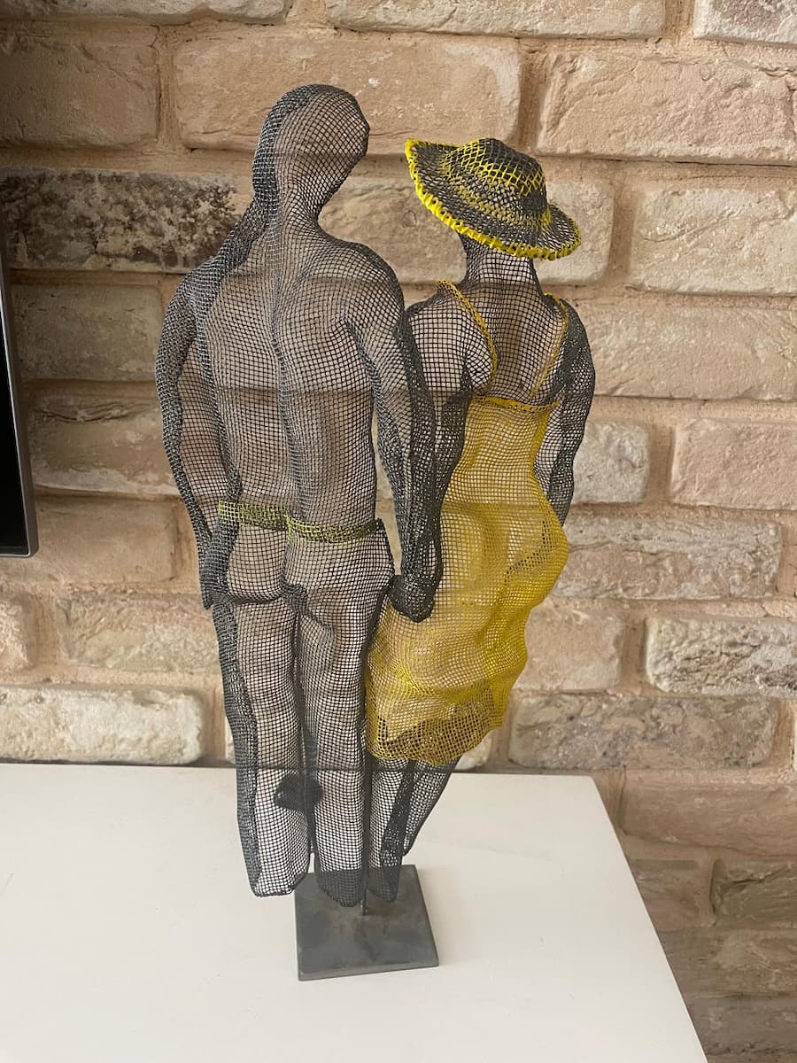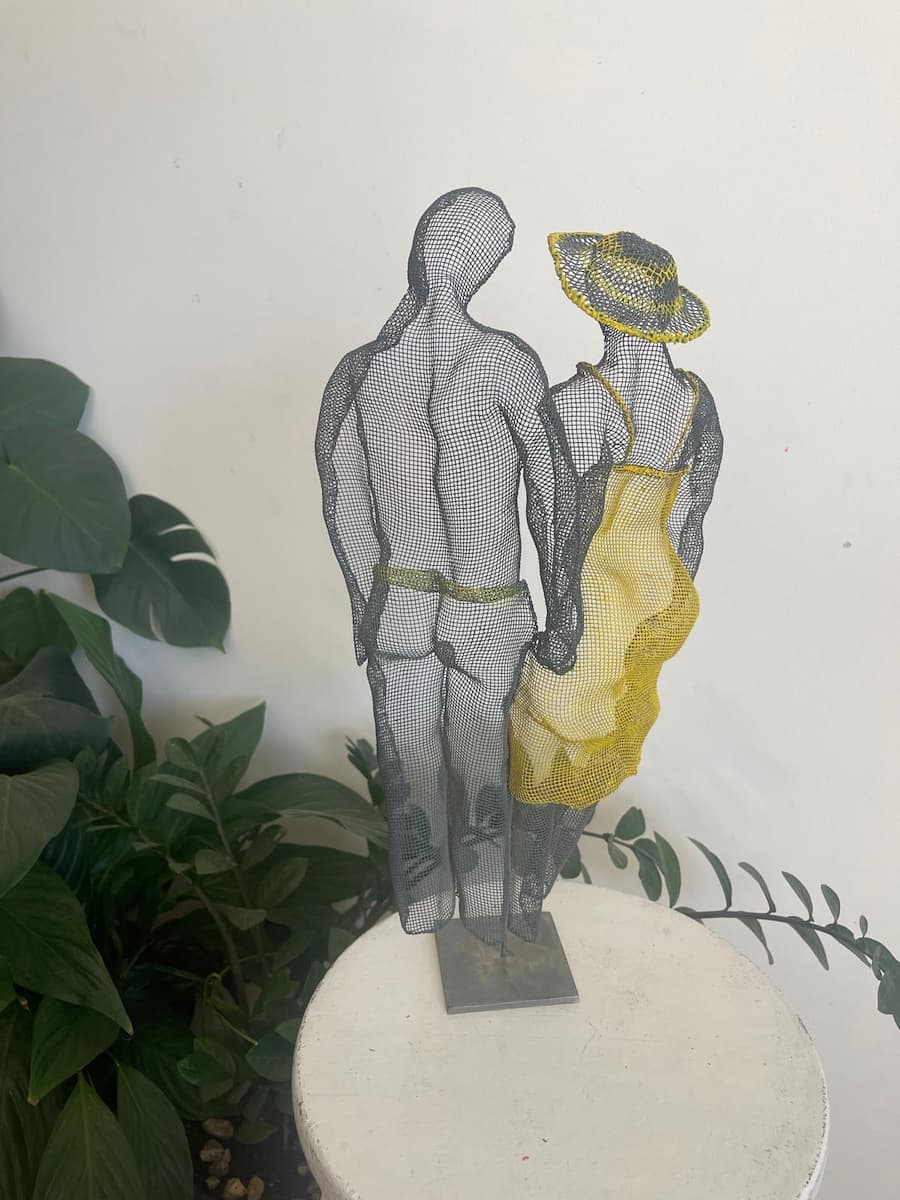 Small Standing Mesh SculpturesA-108 Man and Woman in Dance turquoise